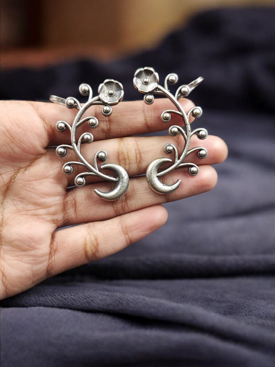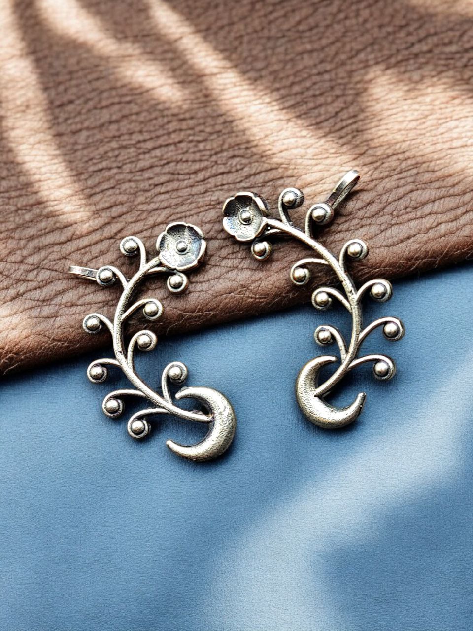The half moon design holds cultural significance and represents grace, balance, and feminine energy. Its curved silhouette creates a striking yet refined look that enhances the natural shape of the ear. The silver replica finish gives it the rich appearance of real silver, making it a versatile piece for everyday ethnic styling.
