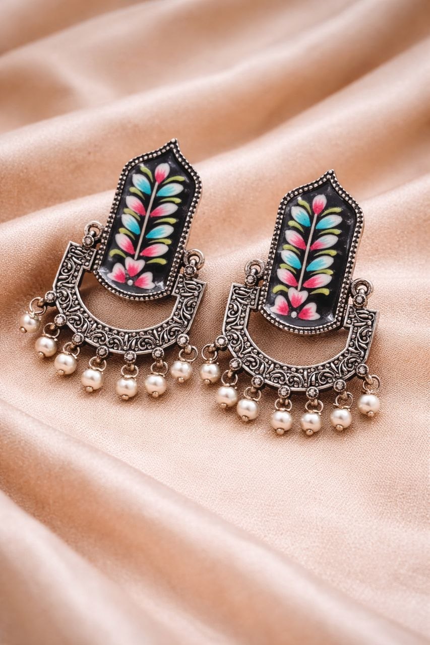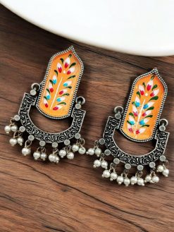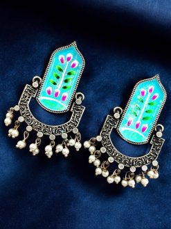 Elevate your accessory game with these exquisite Hand-Painted Dangler Earrings, a perfect combination of artistry and sophistication. Inspired by timeless silver replica designs, these earrings bring a vibrant yet elegant touch to your jewelry collection. Handcrafted with intricate details, they are designed for women who value unique, eye-catching pieces.