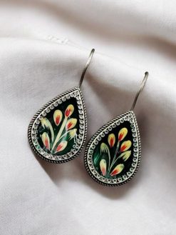Add a touch of artisanal elegance to your accessory collection with these Hand-Painted Earrings crafted in Silver Replica style. Designed for girls who love to embrace unique jewelry, these stunning earrings blend traditional craftsmanship with contemporary appeal, making them perfect for both casual outings and party-wear.
