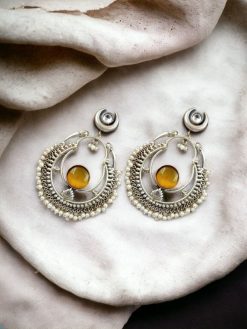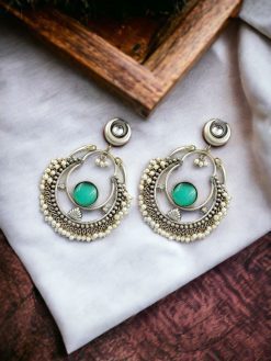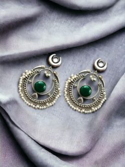 HandMade Silver Replica Chandbali Monalisa Stone Stud Dangler Earrings with Pearl Work