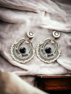 Jaipuri Oxidised Silver Replica Peacock Earrings With Perfect Monalisa Stone and Pearl Work