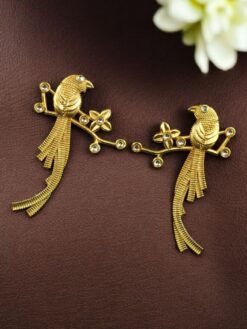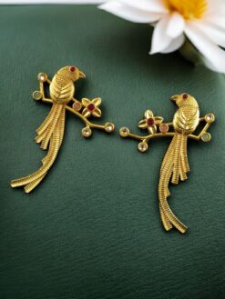 Designed for women who appreciate handcrafted jewelry, these earrings combine durability with artistic beauty. The gold plated finish helps resist fading when properly cared for, while the floral and parrot design keeps them timeless and fashionable. Their cheerful motif and traditional styling make them suitable for women of all age groups.