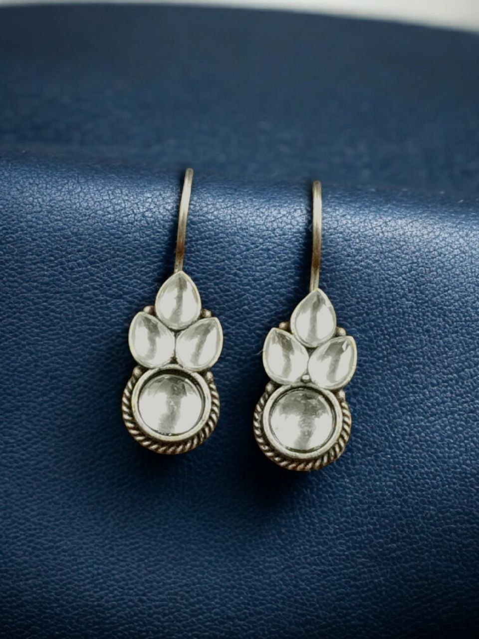 The subtle shine of the silver finish adds a rich, antique-inspired appeal, while the balanced dangler design gives just the right amount of movement for an elegant look. These earrings pair beautifully with sarees, kurtis, salwar suits, and even fusion outfits, making them a versatile addition to your jewelry collection.