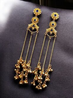 Add a touch of timeless elegance to your jewelry collection with these Gold Plated Kashmiri Earrings with Beautiful Stone Work. Inspired by the rich heritage and intricate artistry of Kashmir, these traditional dangler earrings are designed to enhance your ethnic look with grace and sophistication.