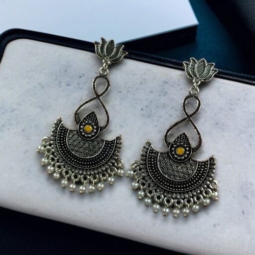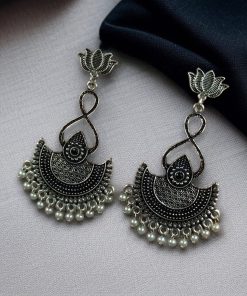 These Lotus Chandbali Earrings are made from high-quality metal and finished with a long-lasting silver plating, giving them a lustrous shine and a premium finish. The fine craftsmanship and attention to detail make them a standout piece in any jewelry collection.