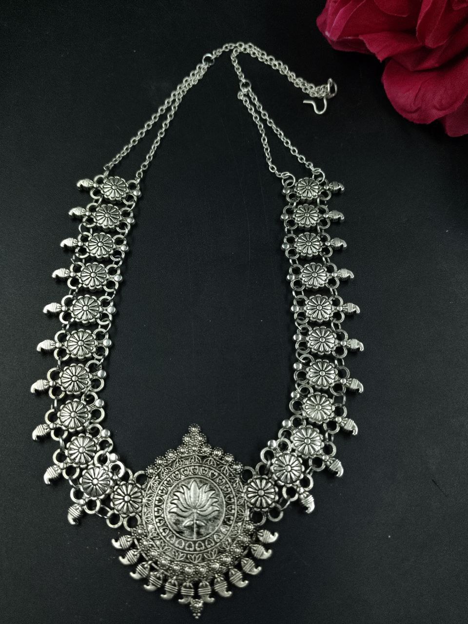 Add a touch of timeless beauty to your jewelry collection with this stunning Silver Plated Necklace by D9CREATION. Designed to complement both traditional and contemporary outfits, this necklace reflects elegance, charm, and fine craftsmanship. Whether you are dressing up for a festive celebration, wedding function, party, or casual ethnic day, this necklace enhances your look effortlessly.