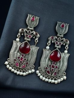 Step into a world of timeless elegance with our Elegant Silver Look-Alike Lotus Earrings with Pearl Detailing – Elephant Dangler Jewelry. These stunning earrings beautifully capture the charm of traditional artistry with a modern silver-look finish, making them a must-have addition to your ethnic jewelry collection.