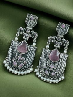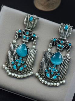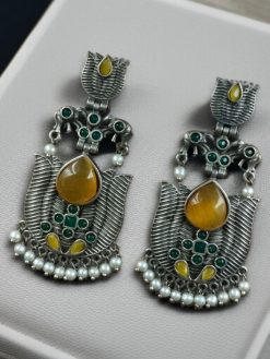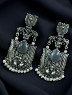 Whether you’re accessorizing for a festive occasion or simply looking to add a statement piece to your daily wear, these Elegant Silver Look-Alike Lotus Earrings with Pearl Detailing and Elephant Dangler promise to enhance your ensemble with heritage and heart.