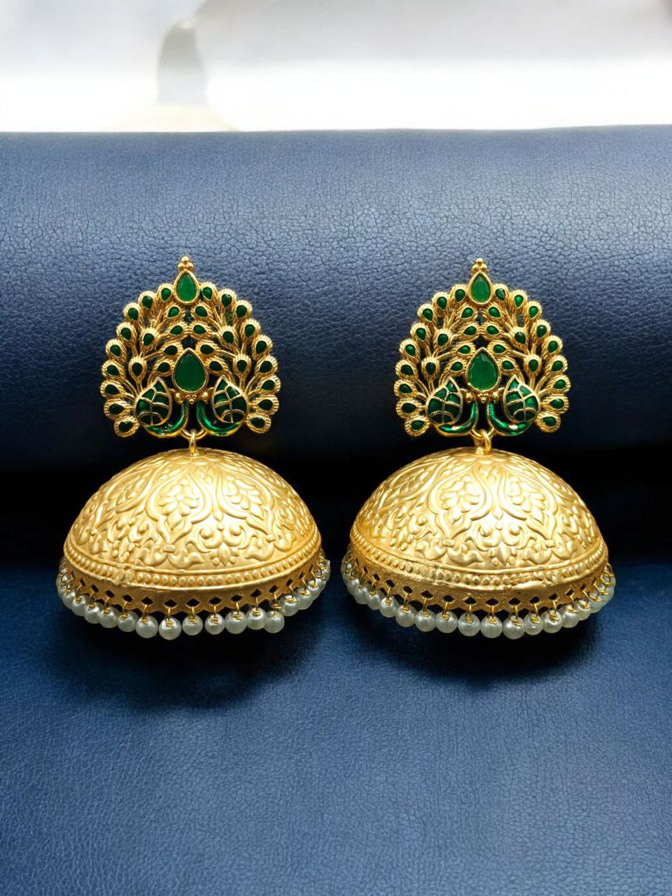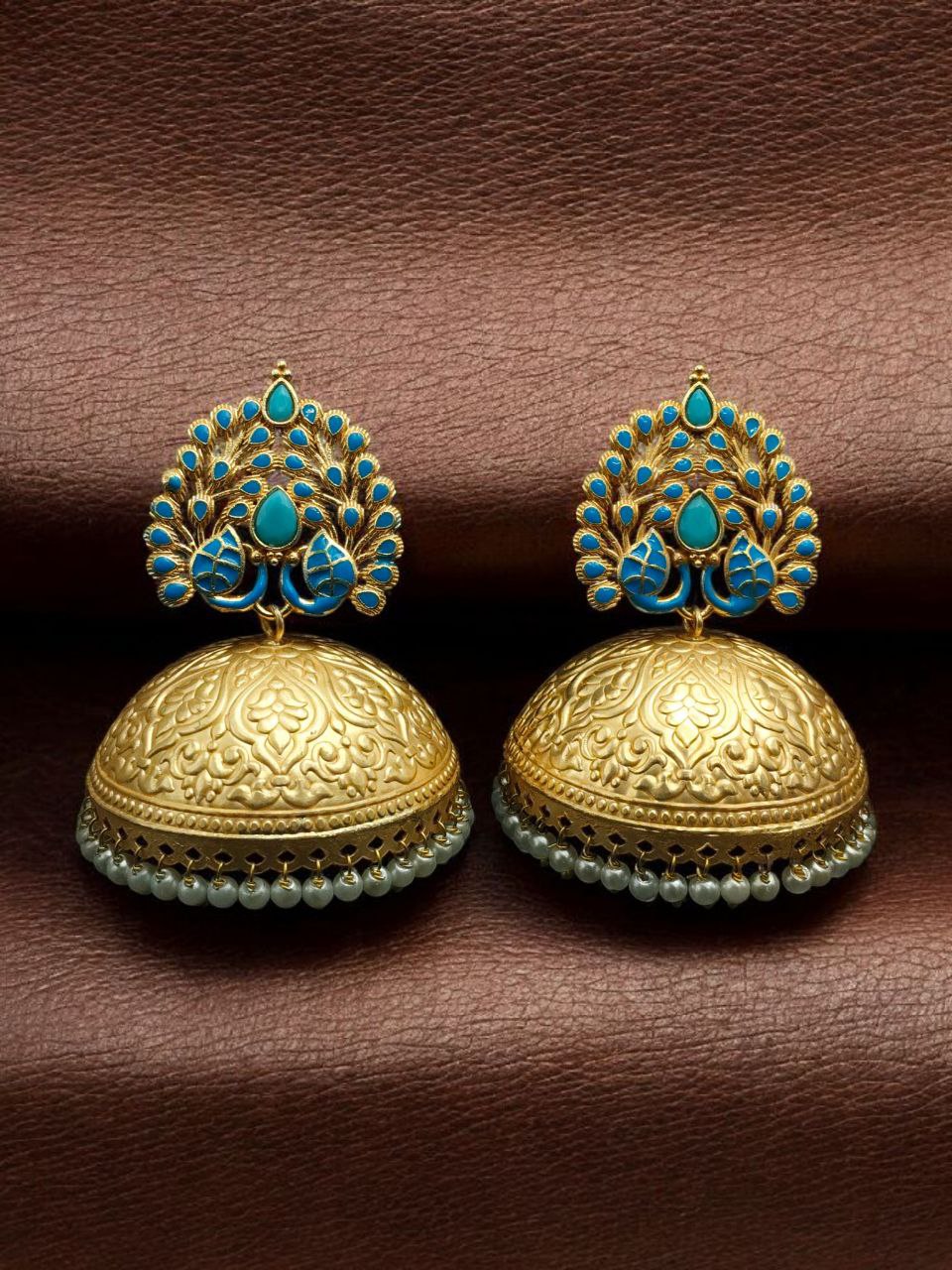 Handcrafted by skilled artisans, the Gold Plated Peacock Jhumka Earrings are made with premium quality metal to ensure durability and comfort. Despite their grand design, they are lightweight enough for prolonged wear, making them perfect for girls and women who love wearing ethnic jewelry daily or on special occasions. The secure push-back closure provides a snug fit, ensuring they stay in place while you move freely and confidently.