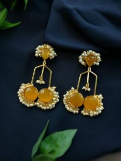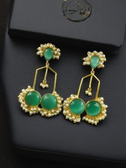 Embrace elegance and tradition with these stunning Gold Plated Monalisa Stone Pearl Dangler Earrings. Designed for women who love timeless beauty, these Pearl Dangler Earrings feature intricately crafted Monalisa stones and delicate pearl drops, making them the perfect accessory for festive and party occasions.
