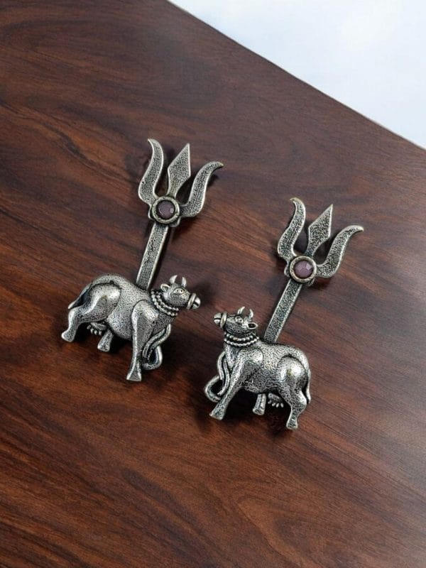 Dangling Style: These Nandi Trishul Earrings are designed to dangle elegantly from the earlobes, adding movement and allure to your look. The Wire design hangs from a silver Arrow Style, allowing the earrings to sway gently with your every movement.