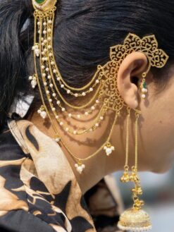 The elegant polish enhances its vintage appeal while maintaining a lightweight feel, so you can enjoy both beauty and comfort together. Unlike heavy traditional earrings, this Non – Piercing Kashmiri Jhumka is thoughtfully designed to prevent discomfort while still offering a bold and royal look. Its detailed craftsmanship reflects fine artistry, making it a must-have addition to every jewelry collection.