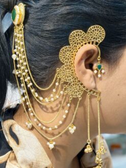 The Non Piercing Kashmiri Jhumka is a beautiful blend of traditional elegance and modern comfort. Designed for women who love ethnic jewelry but prefer not to pierce their ears, this stunning accessory offers the perfect solution. Inspired by the rich heritage of Kashmiri jewelry design, this jhumka reflects timeless artistry and intricate craftsmanship. The delicate detailing and graceful structure make it a standout piece that instantly enhances your overall ethnic look.