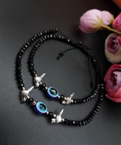Introducing our exquisite Oxidised Anklet, a stunning piece of Evil Eye Beads Anklets that beautifully adorns your Jewelry with its intricate design and elegant craftsmanship. Made with care and precision by skilled artisans, this anklet is the perfect accessory to elevate your style and add a touch of grace to any outfit. Crafted using high-quality materials, our Oxidised Evil Eye Beads Anklets showcases a unique oxidized finish that gives it a vintage and rustic charm. The dark patina and intricate detailing create a captivating contrast, making it a standout piece of jewelry.