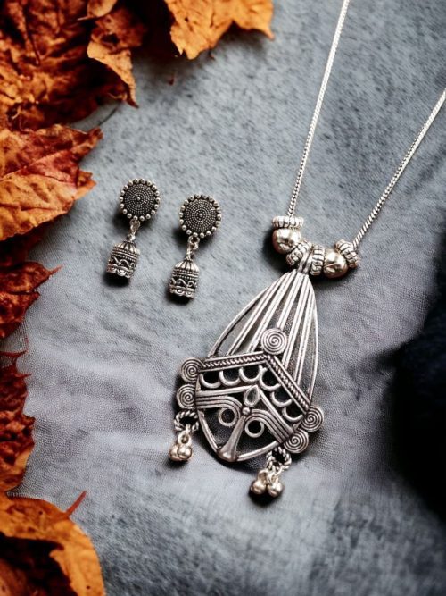 Best-Selling Oxidised Chain Necklace | Godress Durga Pendant Set For Girls