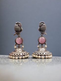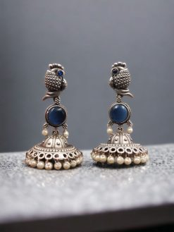 Our Oxidised Jhumka Earrings are meticulously crafted by skilled artisans, ensuring each pair embodies the rich heritage of Indian jewelry. The oxidised silver finish gives these earrings an antique look, enhancing their vintage appeal and making them a versatile accessory for both modern and traditional outfits.