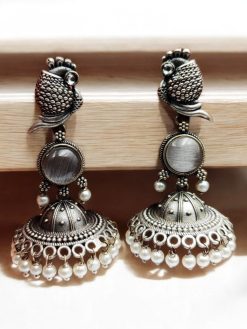 Each Silver look jhumki is embellished with carefully selected stones that add a sparkling touch to the intricate design. The stones are expertly set to complement the oxidised silver finish, creating a harmonious blend of shimmer and sophistication. The delicate stone work adds a pop of color and elegance, making these Oxidised jhumka earrings a statement piece.