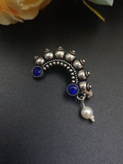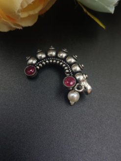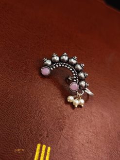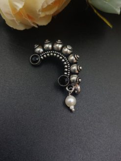 In conclusion, our Antique Oxidized Silver Plated Marathi Nath Press Nosepin is more than just a piece of jewelry; it is a symbol of tradition, culture, and heritage. With its exquisite design, historical significance, and versatile styling options, it is sure to become a treasured addition to your jewelry collection. Whether worn on special occasions or as part of your everyday attire, this nosepin celebrates the timeless beauty of Maharashtrian jewelry and allows you to connect with your roots in style.