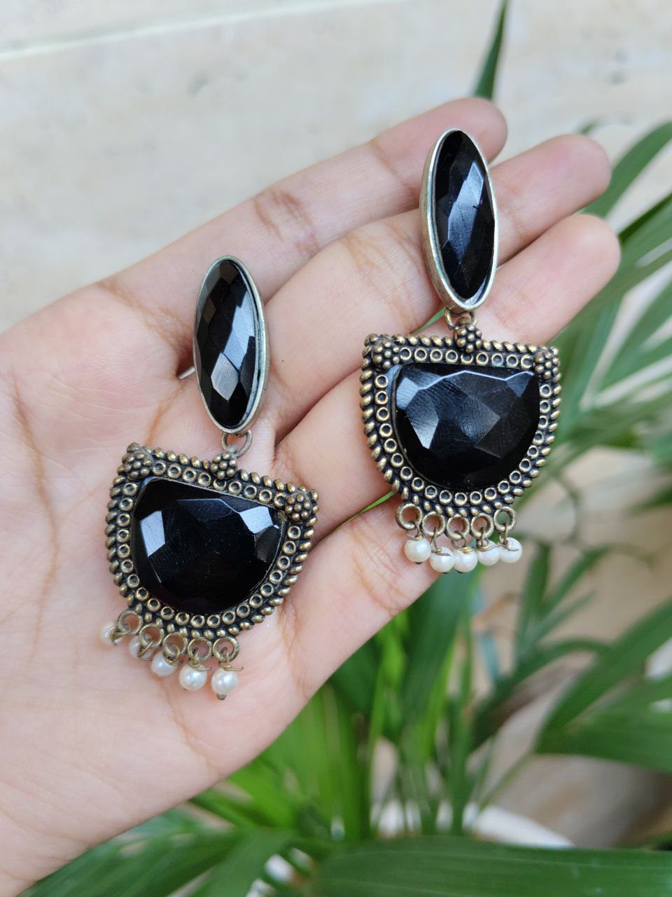 Oxidised Monalisa Stone Stud Earring