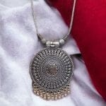 One of the standout features of this Round Chain Pendant necklace is its versatility. It effortlessly transitions from day to evening wear, making it suitable for various occasions and styles. Pair it with casual attire for a touch of elegance or wear it with ethnic outfits to highlight its cultural charm. The neutral tones of the oxidised metal make it easy to coordinate with different colors and textures, adding versatility to your jewelry collection.