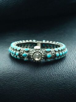 Introducing our collection of Silver Replica Bangles Oxidised Free Size Stone Work Kada, handcrafted with precision and care by D9creation. Each piece is a work of art, showcasing a blend of traditional craftsmanship and Traditional design.
