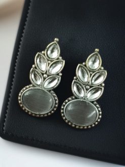 Elevate your ethnic charm with our Traditional Oxidised Stud Earrings with Monalisa Stone – Perfect Silver Plated Jewelry, a timeless blend of vintage elegance and modern craftsmanship. These Oxidised Stud Earrings are an ideal choice for women who appreciate detailed artistry and classic design with a subtle statement.