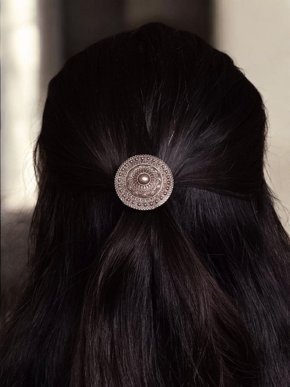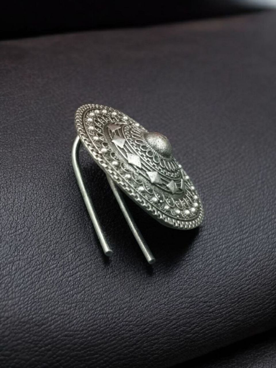 Add a touch of timeless elegance to your hairstyle with this Unique Oxidized Hair Pin, designed to enhance your traditional and modern looks effortlessly. Crafted with exquisite detail, this hair pin reflects the charm of silver replica jewelry, offering a rich and graceful ethnic appearance. Whether you are styling your hair for daily wear or dressing up for festive occasions, this hair pin helps you achieve a neat, stylish, and beautifully adorned hairstyle.