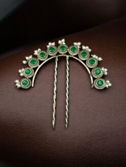 This stone and pearl juda pin also makes a thoughtful gifting option for festivals, weddings, birthdays, and special occasions. Its elegant design and premium craftsmanship make it a beautiful addition to any jewelry or hair accessory collection. Easy to maintain and long-lasting, the oxidized finish retains its charm even with regular use.