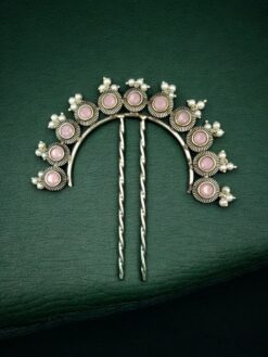Enhance your hairstyle with timeless elegance using the Designer Oxidized Juda Pin with Stone & Pearl Work, a unique hair accessory crafted for women who love ethnic charm with a modern touch. Designed to elevate traditional hairstyles, this beautifully detailed juda pin adds grace and sophistication to your overall look, making it a must-have accessory for festive occasions and everyday ethnic styling.