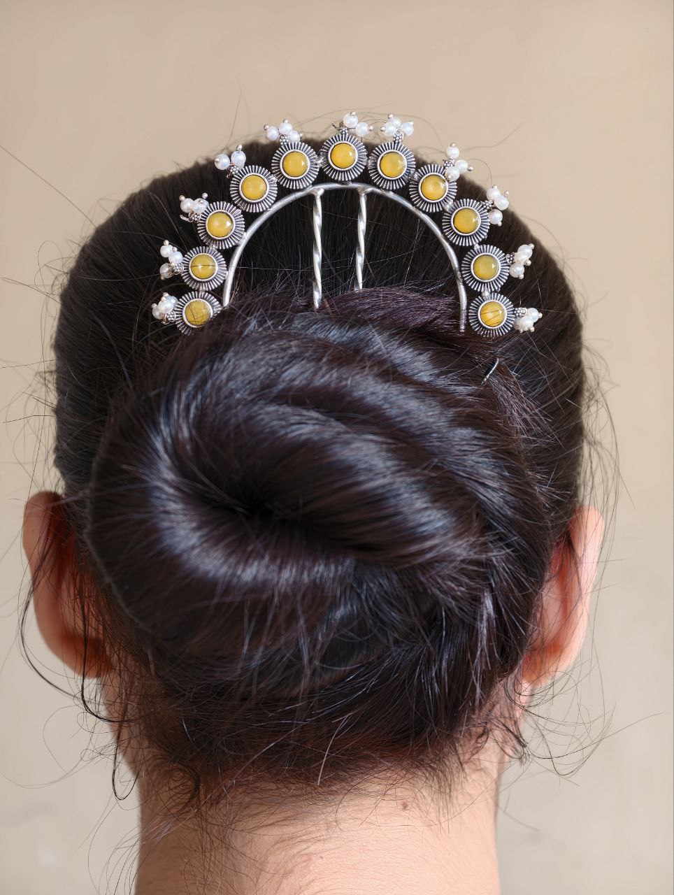 Versatile in design, this oxidized Oxidized Juda Pin is suitable for women of all ages. You can style it with a classic low bun for a traditional appearance or pair it with a contemporary bun or braided hairstyle for a fusion look. Its lightweight construction ensures all-day comfort, making it ideal for long events and celebrations.