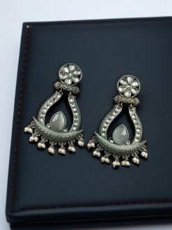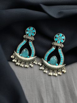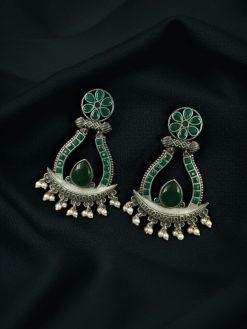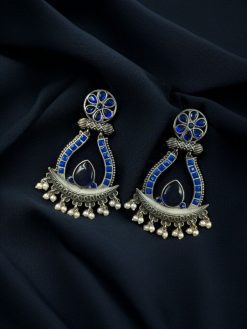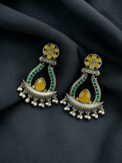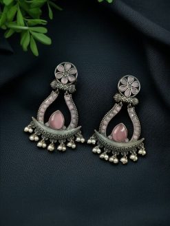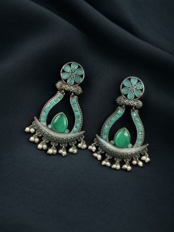 The highlight of these Oxidized Long Earrings is the graceful placement of Monalisa stones, known for their elegant glow and smooth texture, paired beautifully with delicate pearl drops that sway gently with movement. This thoughtful combination enhances the overall appeal, giving you a regal yet versatile accessory you can wear with sarees, lehengas, kurtas, or even Indo-western ensembles.