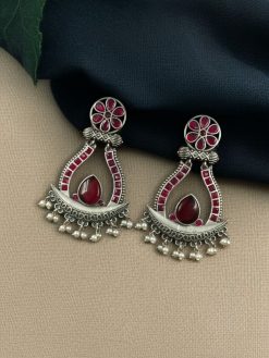 Elevate your jewelry collection with the timeless charm of our Handcrafted Silver Replica Oxidized Long Earrings – a perfect fusion of traditional elegance and modern flair. These statement dangler earrings are thoughtfully designed with a blend of Monalisa stones and lustrous pearl accents, creating an eye-catching accessory that seamlessly complements both ethnic and contemporary outfits.