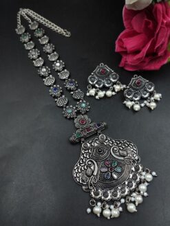 The Oxidized Necklace Set is perfect for multiple occasions, from festive gatherings to casual outings. Its versatile design allows you to transition effortlessly from day to night styling. Whether you’re attending a wedding or heading out for a brunch, this piece ensures you always look stylish and confident. It also makes a thoughtful gift option for loved ones who appreciate elegant jewelry.