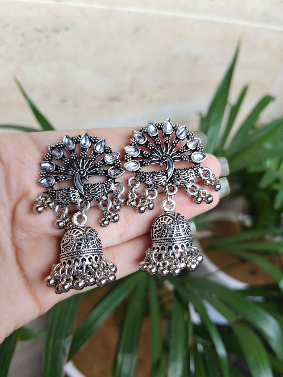Elevate your ethnic jewelry collection with these exquisite Traditional Peacock Earrings, intricately crafted from high-quality German silver. Designed for women who love timeless elegance, these earrings beautifully showcase a peacock motif embellished with sparkling stones and delicate pearl accents. The combination of German silver, shimmering stones, and lustrous pearls creates a perfect harmony of sophistication and ethnic charm.