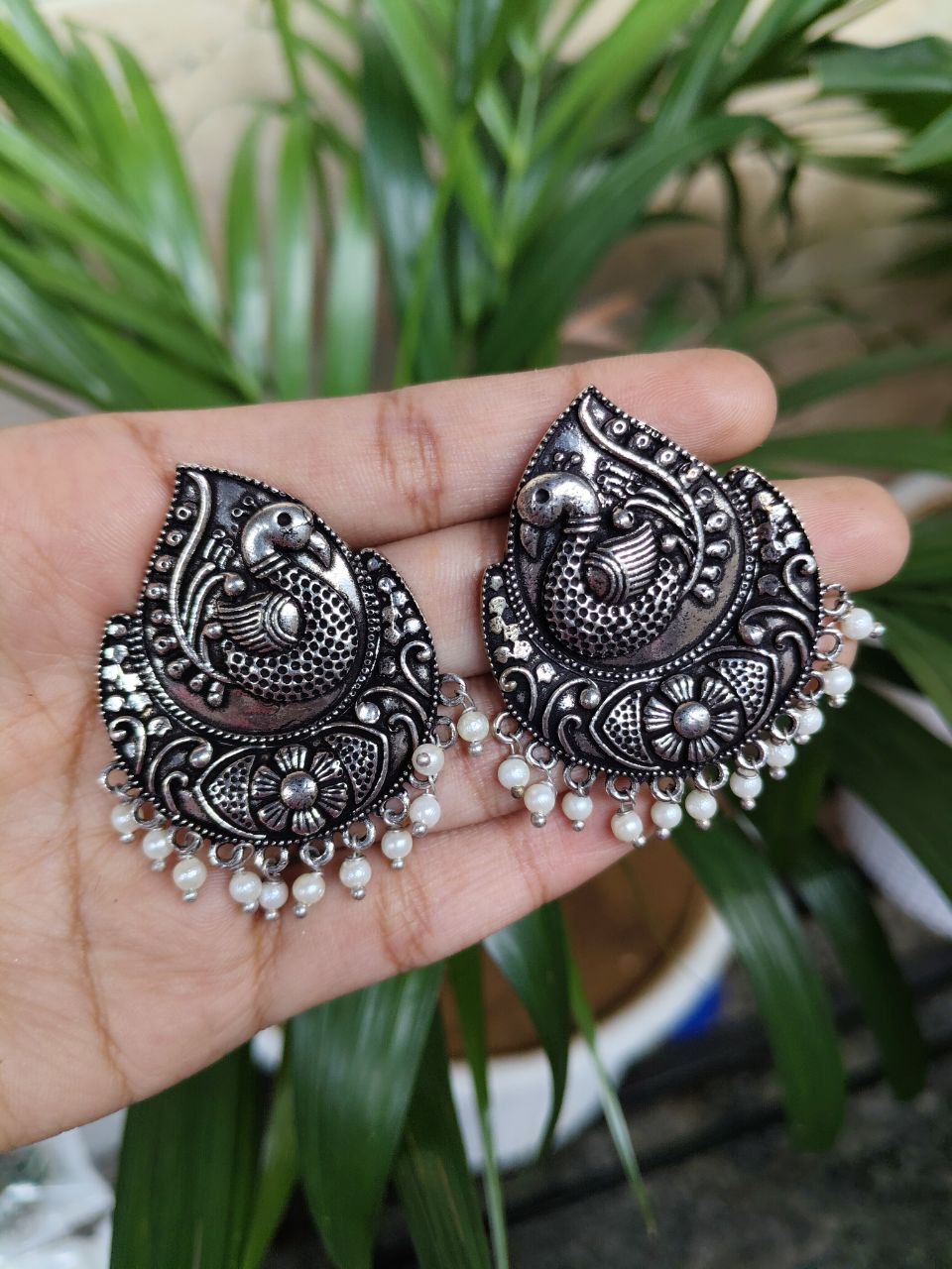 Designer Oxidized Peacock Necklace Set | Trendy Silver Touch Ethnic Perfect Jewelry For Girls