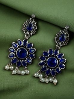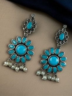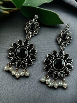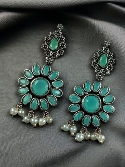 Elevate your ethnic and fusion style with our Best Oxidized Silver Plated Flower Dangler Earrings, beautifully designed with intricate detailing, semi-precious stones, and elegant pearl accents. These handcrafted earrings combine traditional craftsmanship with a modern aesthetic, making them a versatile accessory for any occasion—from festive gatherings to casual outings.