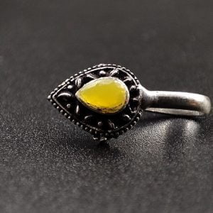 At the heart of this exquisite piece lies a beautiful stone, meticulously selected for its captivating hue and impeccable quality. Each stone is carefully oxidized to enhance its natural beauty and create a unique, rustic charm that sets this nose pin apart.
