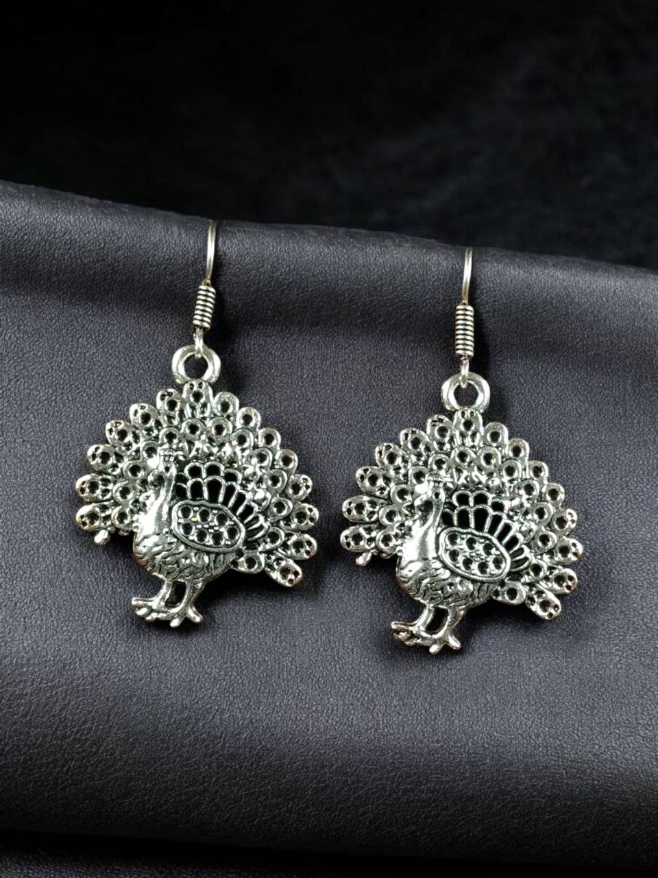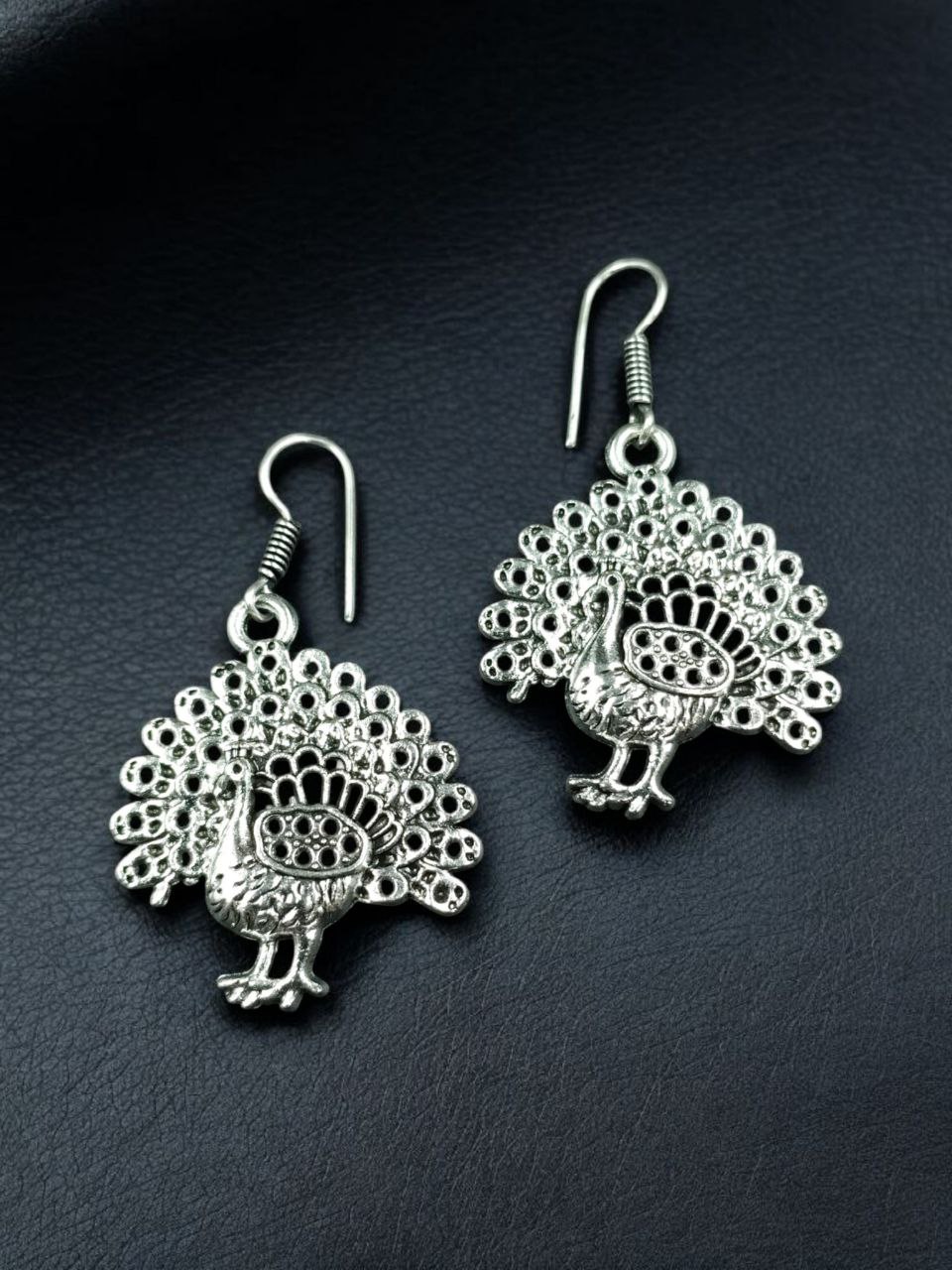Bring home the beauty of ethnic art with these Stylish German Silver Peacock Dangler Earrings, and enjoy jewelry that matches your charm, confidence, and everyday glow.