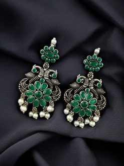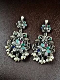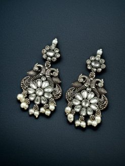 Let your style soar with the charm of tradition and beauty. Add these Silver Plated Peacock Dangler Earrings with Stone and Pearl to your jewelry collection today and embrace your inner diva with grace and confidence