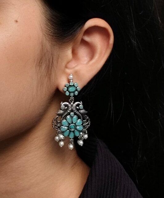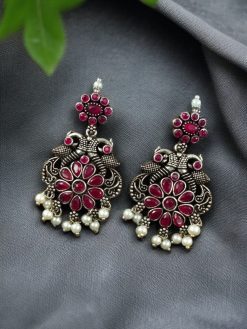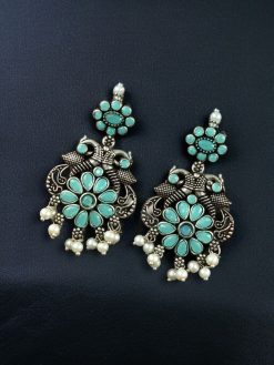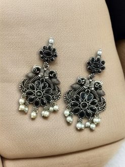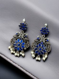 Elevate your ethnic style with the Silver Plated Peacock Dangler Earrings – a stunning blend of tradition, elegance, and artistry. These Peacock Dangler Earrings are beautifully crafted with a peacock-inspired design, symbolizing grace, beauty, and cultural richness. The oxidised silver plating gives them an antique charm that perfectly complements both traditional and contemporary Indian attire.