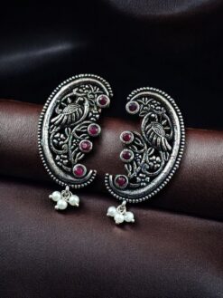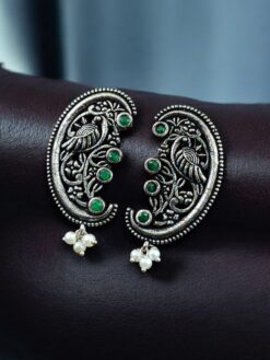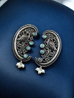 These oxidized German silver peacock earrings pair beautifully with sarees, lehengas, anarkalis, temple jewelry sets, and traditional ethnic outfits. Whether worn as a statement piece or styled with matching jewelry, they elevate your look with elegance and royal charm. Their timeless design makes them suitable for women of all age groups who appreciate heritage-inspired jewelry.