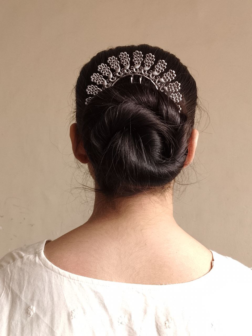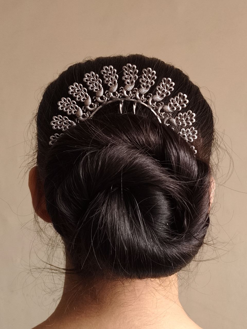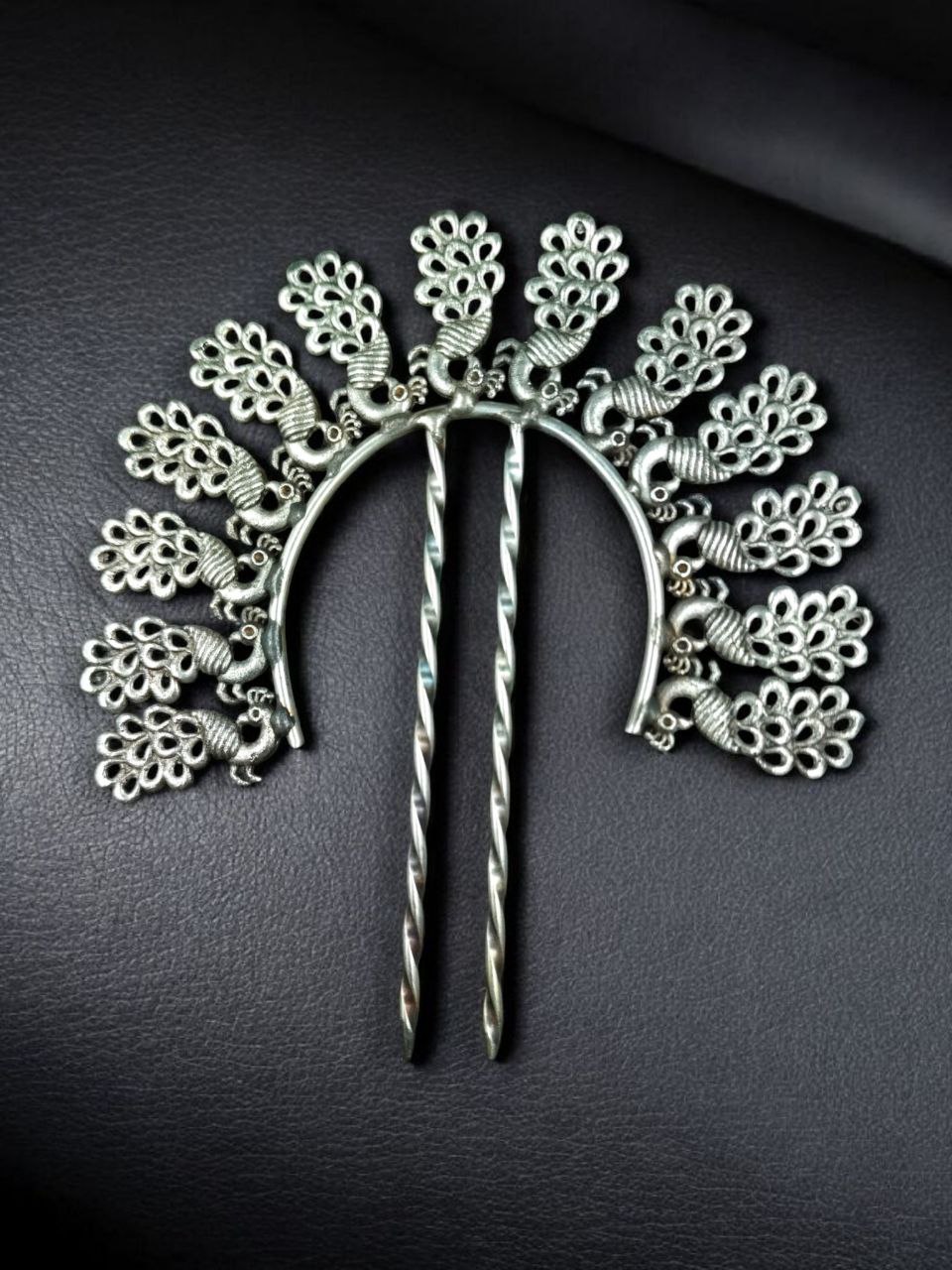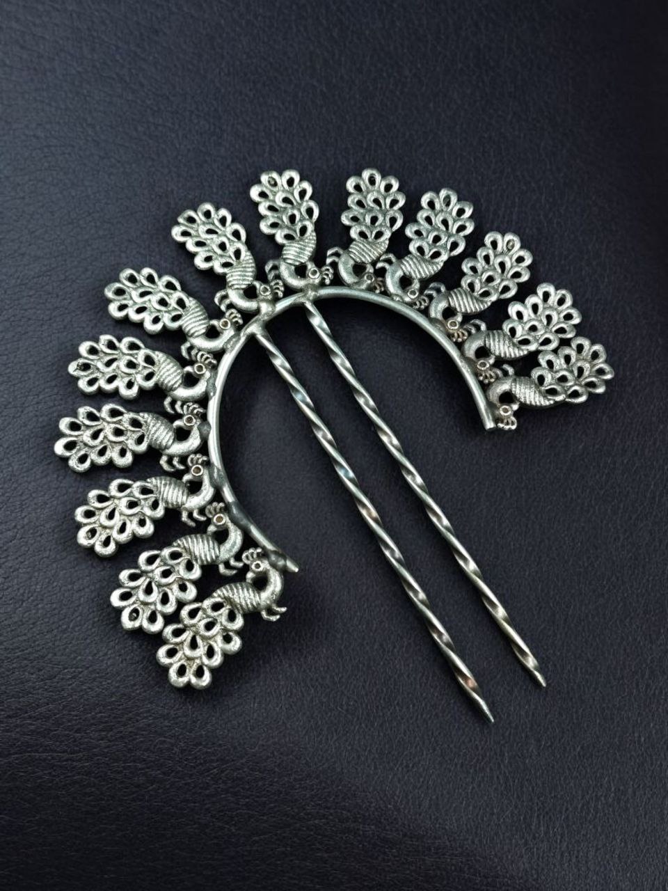 Handcrafted with care and designed with cultural inspiration, this Oxidized Silver Replica Peacock Juda Pin is a must-have for women who adore unique ethnic accessories. Let your bun shine with tradition, beauty, and elegance — every time you wear it.