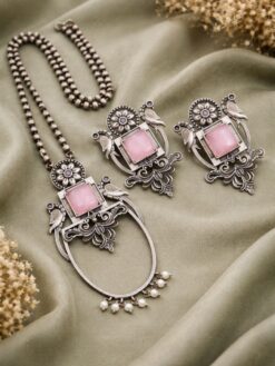 This beautifully crafted necklace set is designed for women who appreciate intricate detailing and timeless designs. The peacock-inspired artistry symbolizes beauty and grace, making it a meaningful addition to your jewelry collection. Its versatile design allows you to pair it with ethnic outfits like sarees, lehengas, or even fusion wear, giving you multiple styling options for different occasions.