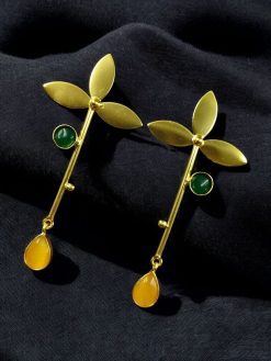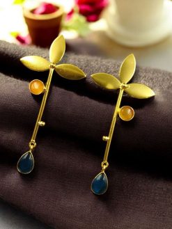 In summary, the Premium Gold-Plated Brass Earrings with Monalisa Stone offer the perfect blend of modern design, luxurious materials, and everyday wearability. Their long stud style creates a striking silhouette, while the gold-plated brass and radiant Monalisa stone ensure a quality finish that won’t go unnoticed.