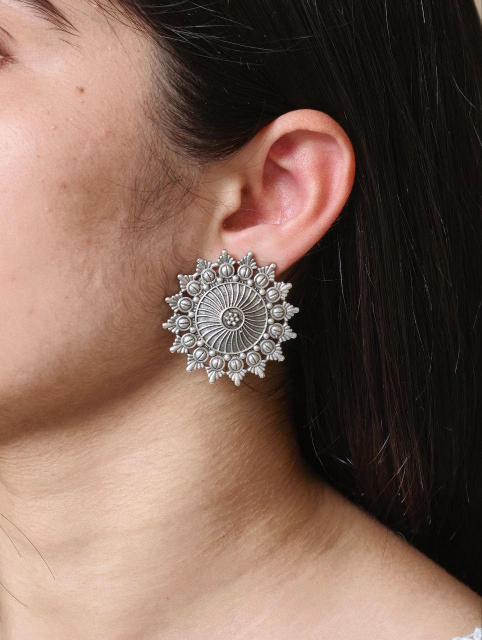 Premium Look Round Stud Earrings | Silver Replica Best Daily Wear Jewelry