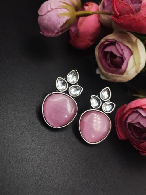 D9creation Presents Silver Replica Design Stud Earrings With Stones are exquisite pieces of jewelry that combine elegance and Monalisa-inspired design. Here’s a description of these stunning earrings.
