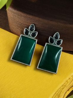 Design: The earrings feature a replica of a Stone Stud, a majestic known for its vibrant feathers and graceful demeanor. The Drop Shape Stone design is intricately carved and showcases the Monalisa Glass Stone Earrings beautiful plumage, including its elegant feathers and distinctive eye patterns.