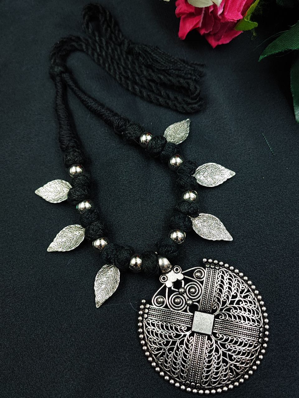 Add a touch of handcrafted elegance to your jewelry collection with this Handcrafted Round Pendant Necklace, beautifully designed with a delicate leaf charm and finished with an adjustable thread. Created for women who appreciate simple yet artistic jewelry, this necklace reflects natural beauty, tradition, and everyday versatility.