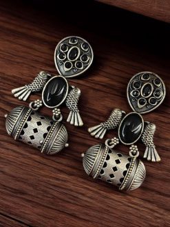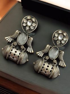 - Antique Silver Finish: The earrings feature an antique silver polish that gives them a vintage, regal look.