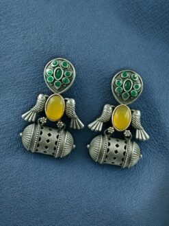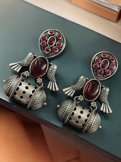 Add a touch of tradition and elegance to your jewelry collection with these Handcrafted Antique Silver Bird Jhumkis. Shop now to experience the beauty of timeless craftsmanship.
